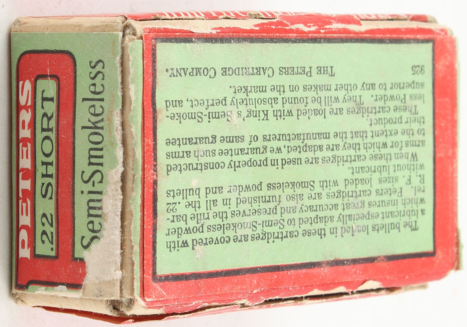 | Peters, R.F. Rifle Cartridges, .22 Short, Semi-Smokeless Powder,...