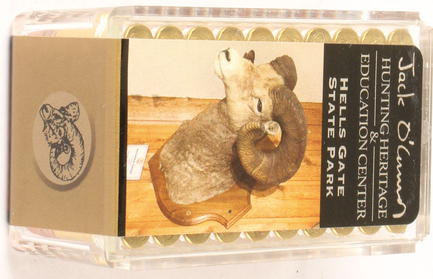 CCi, Jack O'Connor Hunting Heritage & Education Center - Hells Gate State Park, .22 Long Rifle, FULL & SEALED, 2pc. Clear plastic tray with label features bighorn trophy, comes with extra round to display the unique bighorn headstamp, tray is clean & clear, label is intact with minty color. Grade: MINT - Value: 24 to 36