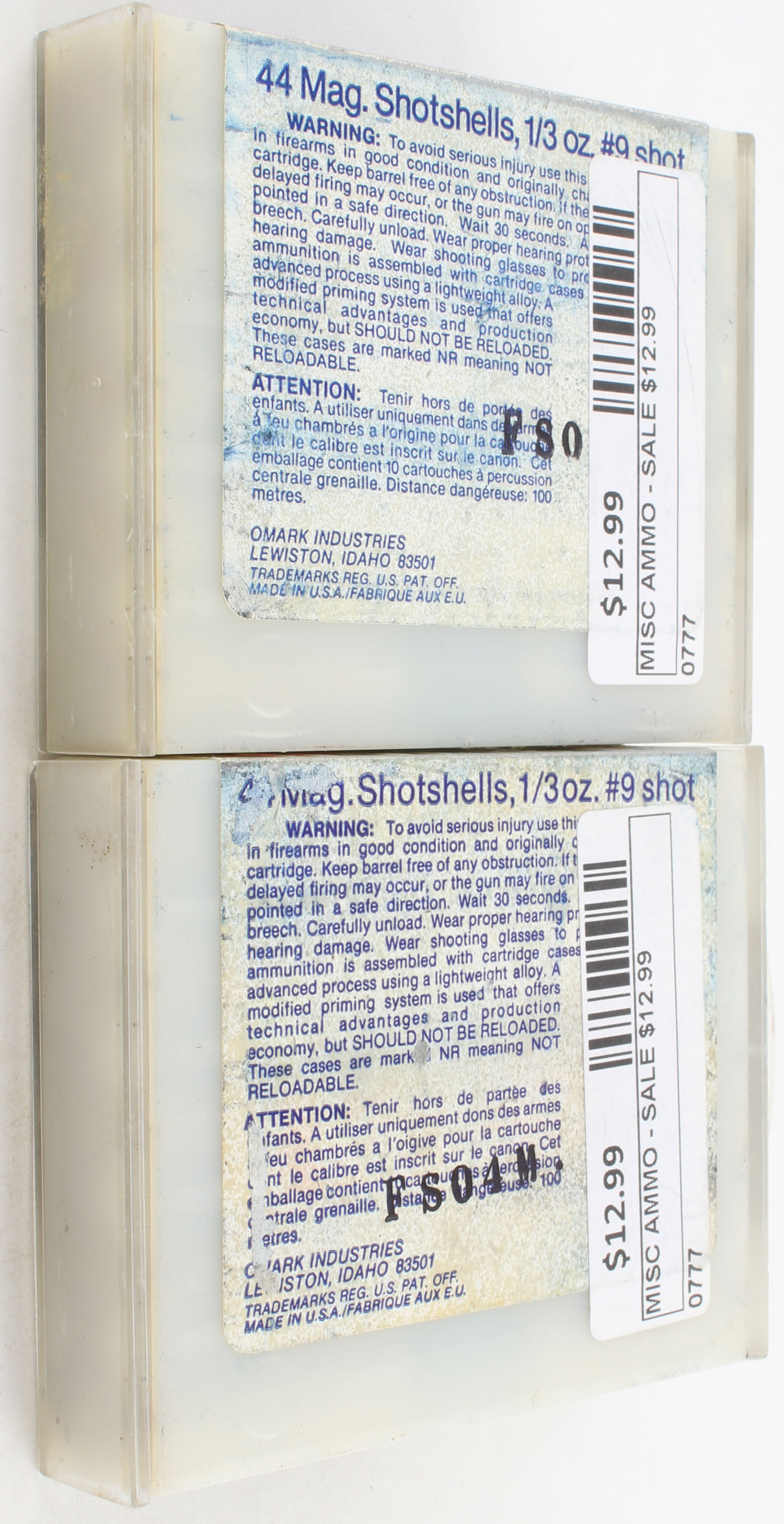 CCI, Lot of (2), .44 Magnum Shotshells, Full, 1pc. Multi-colored boxes, ammo is excellent. Grade: Excellent - Value: 20 to 40