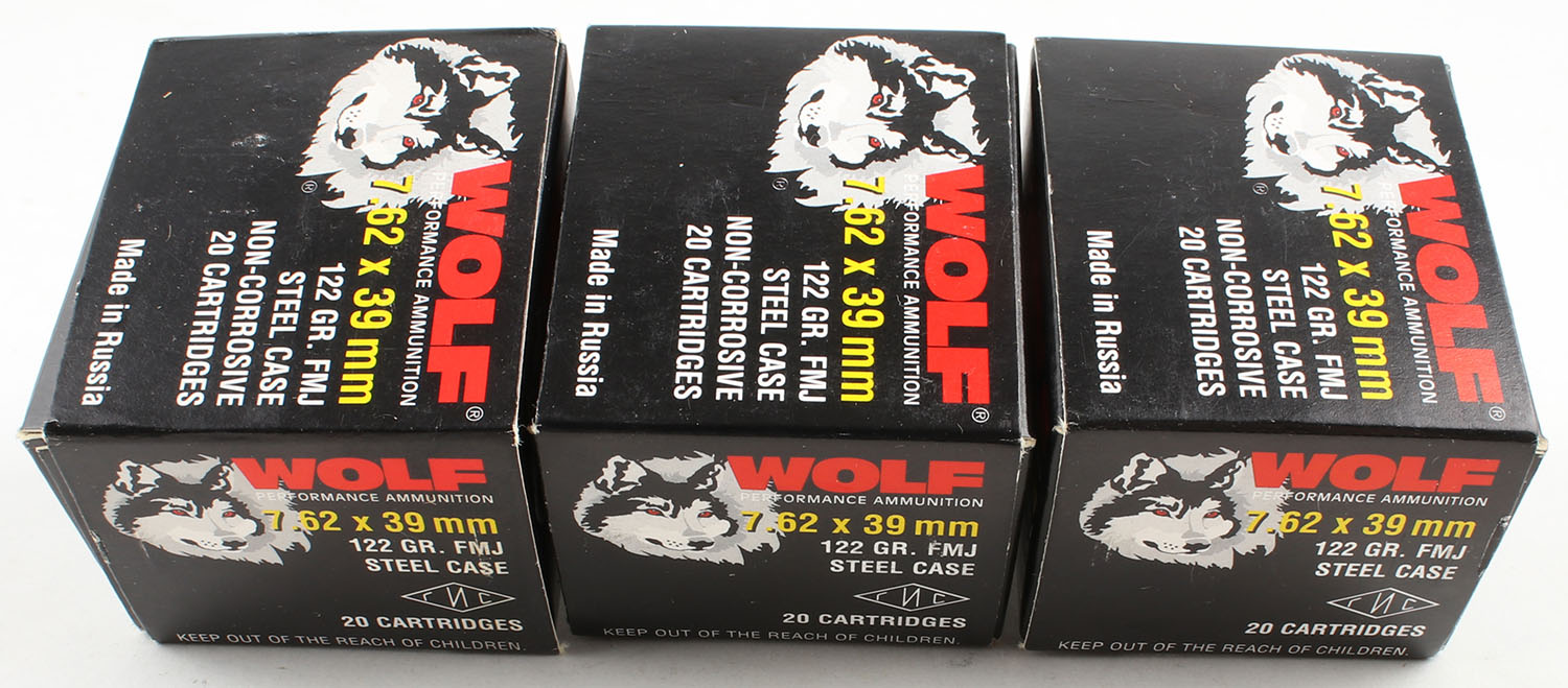 | Wolf, Lot of (3), 7.62x39mm, 122 Grain FMJ Steel Case, Full (60r...
