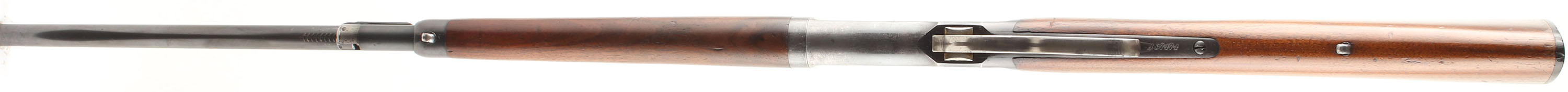 Winchester, Model 1886 TAKE-DOWN, 33 WCF, MFG. 1905, SN: 137474, Lever Action Rifle, 24'' Round barrel, 1/2 mag. The original straight grip stocks are excellent, retaining the majority of the original finish, with thinning at the carry points & minor handling marks, light scratches & contusions. The original metal blue finish 85% on the barrel, 80% on the receiver, with the lever & hammer being case-hardened & displaying muted case-colors. The sliding bolt retains a full 85% of its original bright blue. The barrel is fitted with an adjustable rear sight & a Lyman half moon blade & ivory bead front sight. Bore is excellent & bright. Stock carries a checkered widow's peak plastic shotgun buttplate, with sling eyelets in stock & forend cap. This rifle is an excellent example of an original & collectible 1886. FFL or C&R Req. - Value: 2750 to 4000