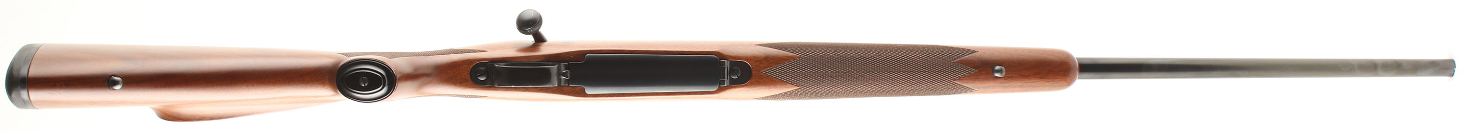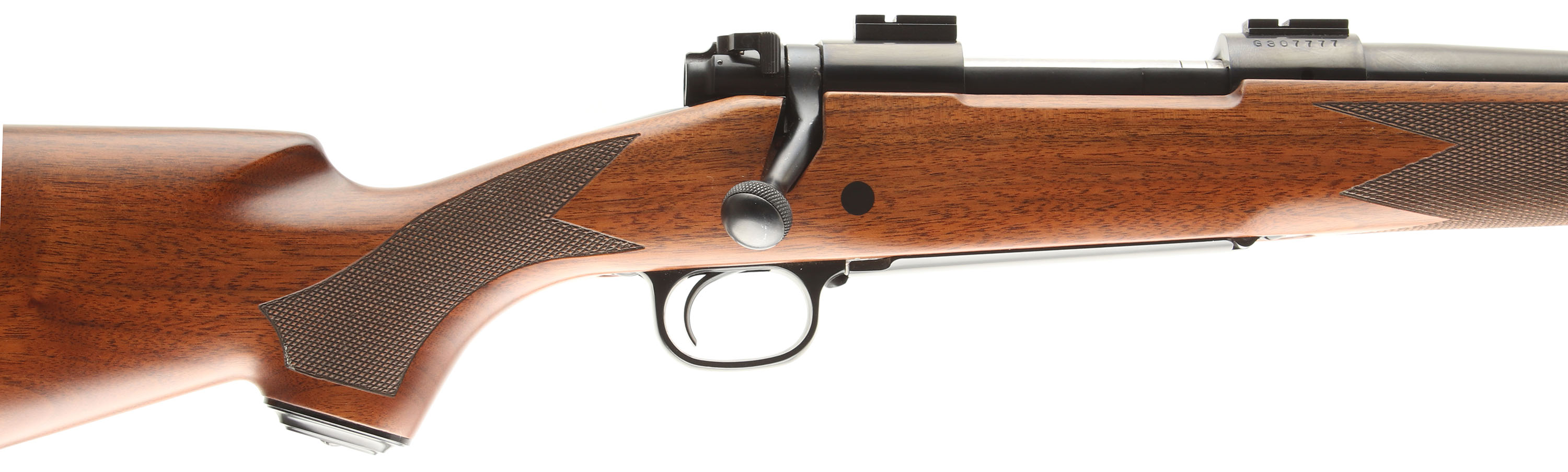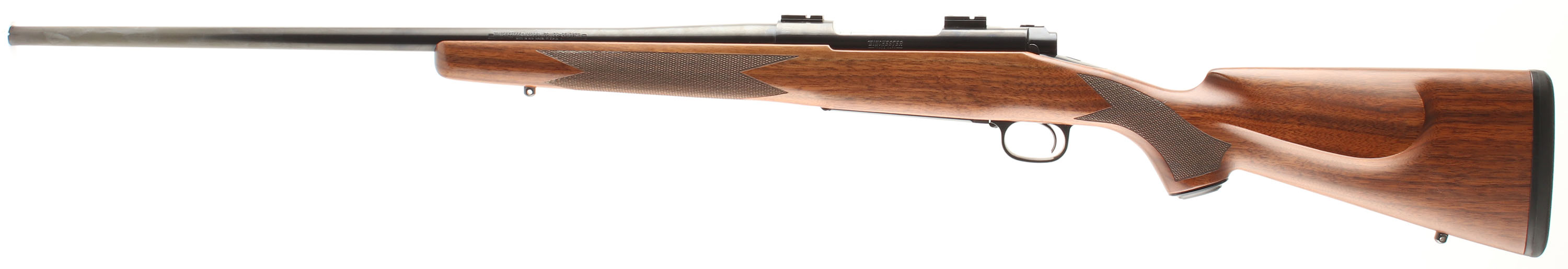 Winchester, Model 70 Classic Sporter, CAL: marked 30-06 SPRG, MFG. Late 1990's, SN: G307777, 24'' Round tapered barrel. The factory cheeked, checkered & capped pistol grip wood stock is excellent, with virtually no handling marks to the excellent original finish. The metal blue finishes rate 99% overall. Bore is excellent & bright. The receiver has two scope block ready for scope mounting, while the barrel has no provisions for open sights. The stock carries the original Winchester solid rubber recoil pad. Sling studs. Matching SN jeweled bolt. An excellent & original model 70 Classic Sporter. FFL Req. - Value: 800 to 1000