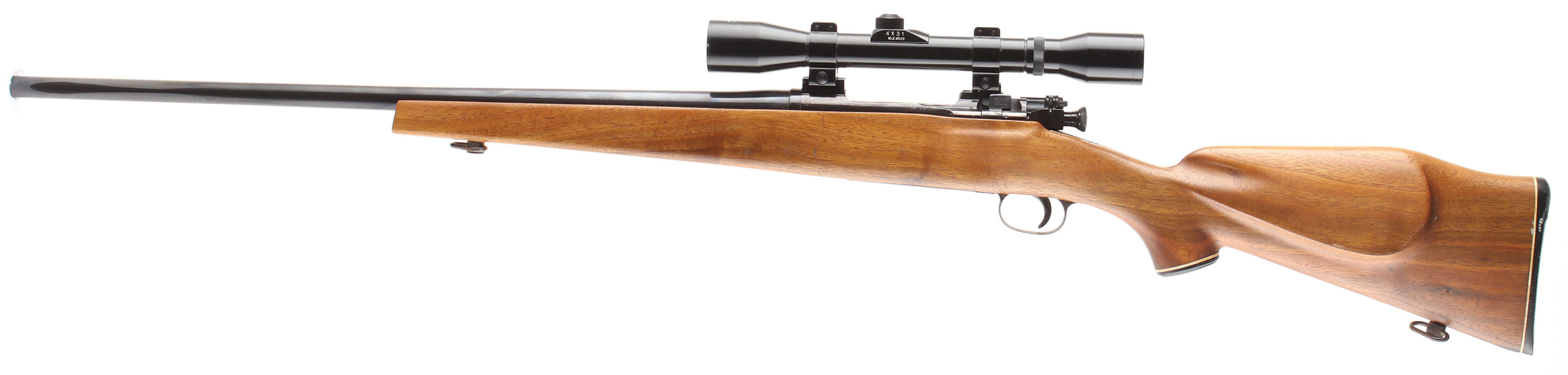 CUSTOM Remington, Model 1903 Action, CAL: 30-06, MFG: 1942, SN: 3240665, Bolt Action Rifle, 23'' barrel. The custom cheeked & capped pistol grip Monte Carlo wood stock is excellent. The wood shows a few minor scrapes, scratches & contusions to the finish. The metal blue finishes rate 85% on the barrel & receiver, with the receiver blue toning plum. The floorplate & trigger guard have flaking & cleaned pitting. Bore is excellent. The receiver carries a Swift 4X31 scope on Lyman Tru-lock mounts, while the barrel has no open sight provisions. Buttstock carries a Fajen plastic buttplate. Sling swivels have rust pitting. A well built custom bolt action rifle. FFL or C&R Req. - Value: 400 to 700