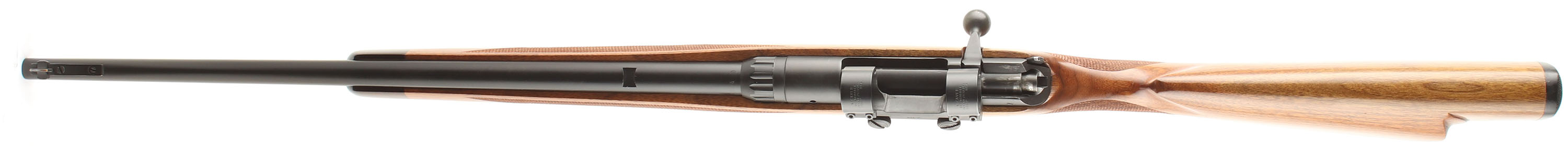 Savage, Model 340, CAL: 30-30, MFG: 1950-68, SN: None, Bolt Action Rifle, 22'' Round barrel. The updated Bishop cheeked, checkered & capped pistol grip wood stock is excellent, with rosewood forend cap. There are virtually no handling marks to the excellent finish & excellent sharp checkering. The metal blue refinish rates 99% overall, trigger guard & mag show additional wear. Bore is excellent & bright. The receiver carries a Weaver 1'' side mount scope base & ring set ready for a scope, while the has an open rear dovetail & ramped Marbles Sheard blade front sight, The buttstock carries a Bishop checkered plastic buttplate. Sling studs Original detachable mag. Sling loops. FFL or C&R Req. - Value: 250 to 450