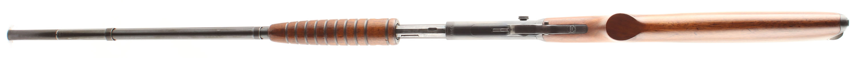 Remington, Model 25, marked 25-20, MFG: 1923-36 SN: 9545, Pump Action Take-down Rifle, 24'' round barrel. The original flat pistol grip wood stocks are excellent & solid, with the stock having been professionally cleaned, lightly sanded & nicely refinished to match the original finish still on the forend. There are minor finish level light scratches or handling marks to the stocks. The original factory metal blue finish has 90% coverage on receiver, 80% on the mag tube & barrel, with the barrel starting to tone plum in areas of thinning. Bore is excellent. Barrel carries an adjustable rear & standard front sights. Remington stamped crescent metal buttplate. These smaller caliber & light weight pumps were popular for small game & varmint hunting & most saw heavy use. With less than 32,000 model 25 rifles produced, nice examples are fairly rare. FFL or C&R Req. - Value: 500 to 1000