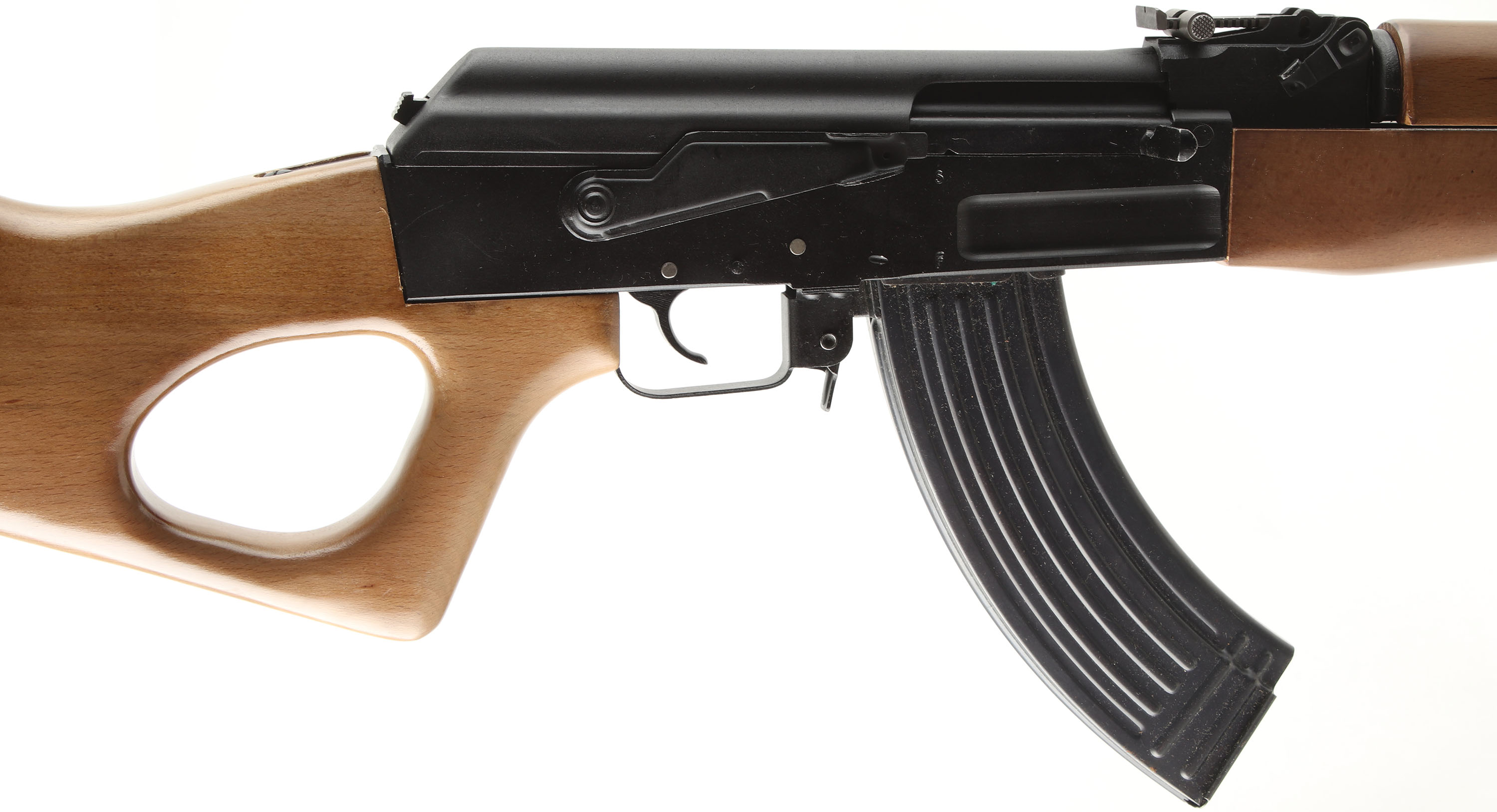 BOXED Arsenal (Sentinel Arms), SA93, CAL: 7.62x39, MFG: 1994. SN: 0076, Semi Auto Rifle, 16'' Barrel. The wood thumbhole stock & forend are in excellent condition, solid with minimal wear. The black finish on the gun is excellent with minimal wear. Bore is excellent, bright with strong rifling. Mechanically solid, seems to function well. The gun has a ladder style rear sight & a front sight post. Comes in the correct importers box with one 10 round magazine, four 30 round magazines, a sling, an oil tin, a small cleaning kit, an owners manual & other related paperwork. FFL Req. - Value: 500 to 1500