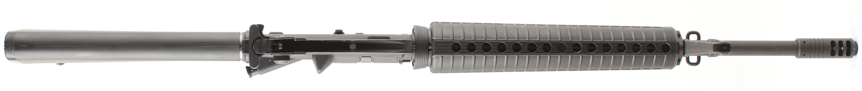 Colt, Match Target HBAR (AR-15), CAL: 223 Rem, MFG: Modern. SN: CMH026379, Semi Auto Rifle, 20'' Barrel. The factory plastic A2 style furniture is excellent with light wear from use. The anodized finish on the gun is very good, near excellent, with some wear including small dings & surface scratches concentrated on the left side of the gun. Bore is excellent, bright with strong rifling. Mechanically solid, seems to function well. The gun has an elevation adjustable front sight that is integral to the gas block. The carry handle upper receiver has a windage & elevation adjustable rear sight. Comes with a 20 round magazine. FFL Req. - Value: 500 to 1000