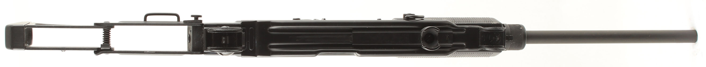IMI- Israel (Action Arms Import), Model: Uzi Semi-auto Model B, Cal: 9x19mm, MFG: 1983-89, S/N: SA49207, Semi-auto rifle, 16 1/8'' barrel. The grooved black polymer pistol grip & foregrip are excellent with a couple minor scuffs & light handling wear. Metal folding buttstock. The parkerized finish on the barrel rates 92% with light rust speckling. The black paint finish on the rest of the metal rates 98% with a few light scratches. The left side of the receiver is marked ''UZI semi auto'', ''MODEL B'', ''9mmPARA'', ''IMI-ISRAEL''. The right rear side of the receiver is marked ''ACTION ARMS,LTD'', ''Phila.Pa.'', & the S/N. the right end of the barrel is marked with a ''P'' in circle, & the last three digits of the S/N ''207''. The bore is very good. Its bright & mirror like with a couple spots of light pitting. The receiver holds a elevation adjustable post front sight with protective ears, & a windage-adjustable, aperture flip up L sight with 100 & 200 meter positions. The folding buttstock has carries no buttplate, but the shoulder end is grooved for better control. The gun appears to be in full working mechanical order. Comes with a 32 Rd. steel mag. FFL Req. - Value: 1500 to 3000