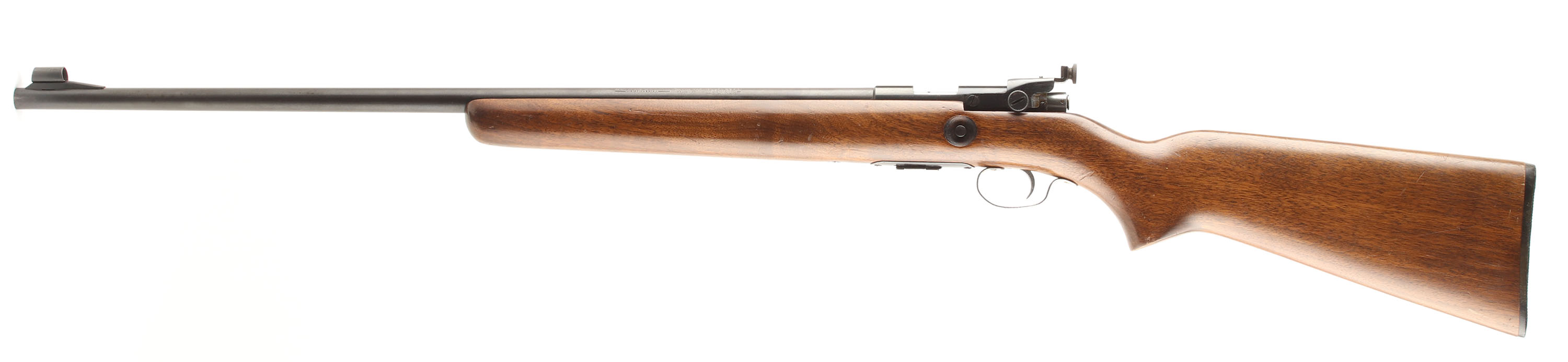 Winchester, Model 69A, CAL: 22 S,L,LR, MFG: 1935-63, SN: NONE, Bolt Action Rifle, 25'' barrel. Grooved receiver. The flat pistol grip & blunt nose forend wood stock is excellent, it exhibits the original finish, with several minor scrapes, scratches & contusions. The original metal blue finish rates 90% on the receiver & 85% on the barrel. Bore is excellent. The rifle is fitted with the correct receiver mounted aperture disk rear sight & hooded ramped blade sight. Buttstock carries a Winchester marked, checkered black plastic buttplate. Nickeled bolt handle, trigger & trigger guard. Comes with a Winchester stamped detachable magazine. FFL or C&R Req. - Value: 300 to 600
