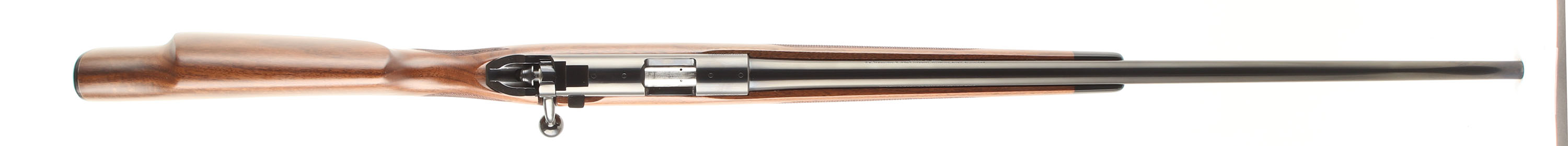BOXED Browning, Model 52 Sporter, CAL: .22 LR, MFG: 1991, SN: 02819NZ496, Bolt Action Rifle, 24'' round barrel. The factory cheeked, checkered &capped pistol grip Monte Carlo walnut stock is near mint. Ebony forend tip. The factory metal blue finish is 100%. No open sight provisions on barrel. Mint bore. Browning plastic buttplate. Sling provisions. Browning detachable mag. Comes in the SN matching original box, with Browning scope block & paperwork packet. Basically NOS. FFL Req. - Value: 1000 to 1300