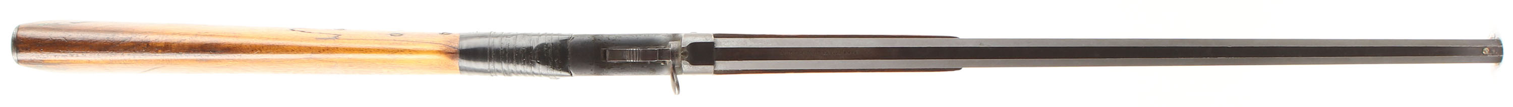 H. Pieper, Rolling Block, Cal: .22 Long, MFG: 1894-98, S/N: None, Single Shot Rifle, 19 7/8'' barrel. The wood stock is fair & feels solid, after having been broken at the wrist & repaired with brass screws & a thick tape wrap. There is a 2'' crack on each side of the toe of the stock. There are numerous scuffs, scrapes, scratches & contusions to the wood, with an added layer of finish. The metal blue finish has toned to a mix of original blue & chocolate patina with nearly full coverage. The bore is fair to poor, with lots of cleaned roughness & pitting, amongst very thin rifling. The barrel holds a single smashed brass front bead, while the rear sight notch is integral to the top of the frame. The stock carries a smooth crescent metal buttplate. Antique, No FFL Req. - Value: 50 to 150