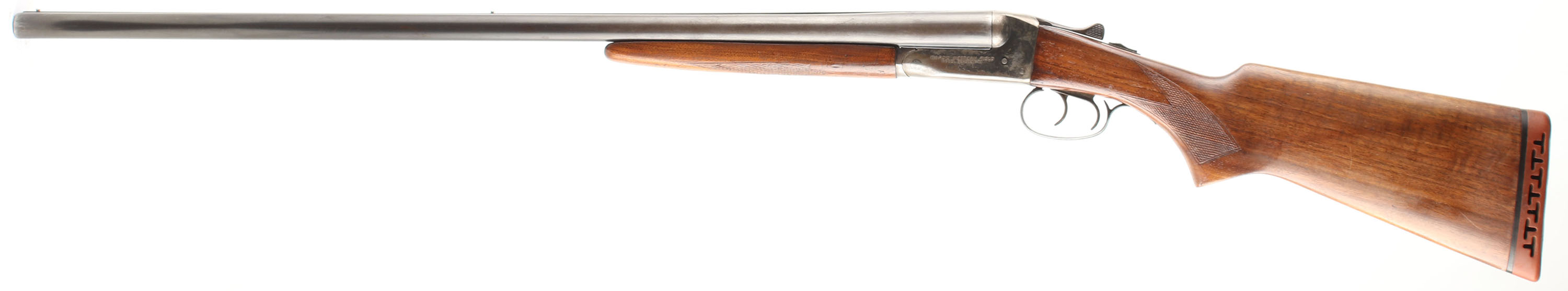 Ward's Western Field (Stevens), Model 52-SB311-TA (Model 311A), CAL: 12GA, MFG: 1951, SN: NONE, SxS Shotgun, 2 3/4'' Chamber, 30'' barrel. The checkered flat pistol grip stocks are excellent, having been refinished at one time. There are contusions, scrapes & dings throughout. The blued finish on the barrel rates 50% & the receiver rates 40%, with a thick black finish remaining in the crevices of the barrel rib. Bores are very good & bright, with intermittent patches of roughness. The solid matted rib holds a small mid-rib bead & front bead. Stock has a ventilated recoil pad. Double triggers. The side of the barrels don't sit flush to the shoulders on the receiver. We recommend this shotgun be inspected by a licensed gunsmith before use. SOLD AS IS NO RETURNS. FFL or C&R Req. - Value: 100 to 250