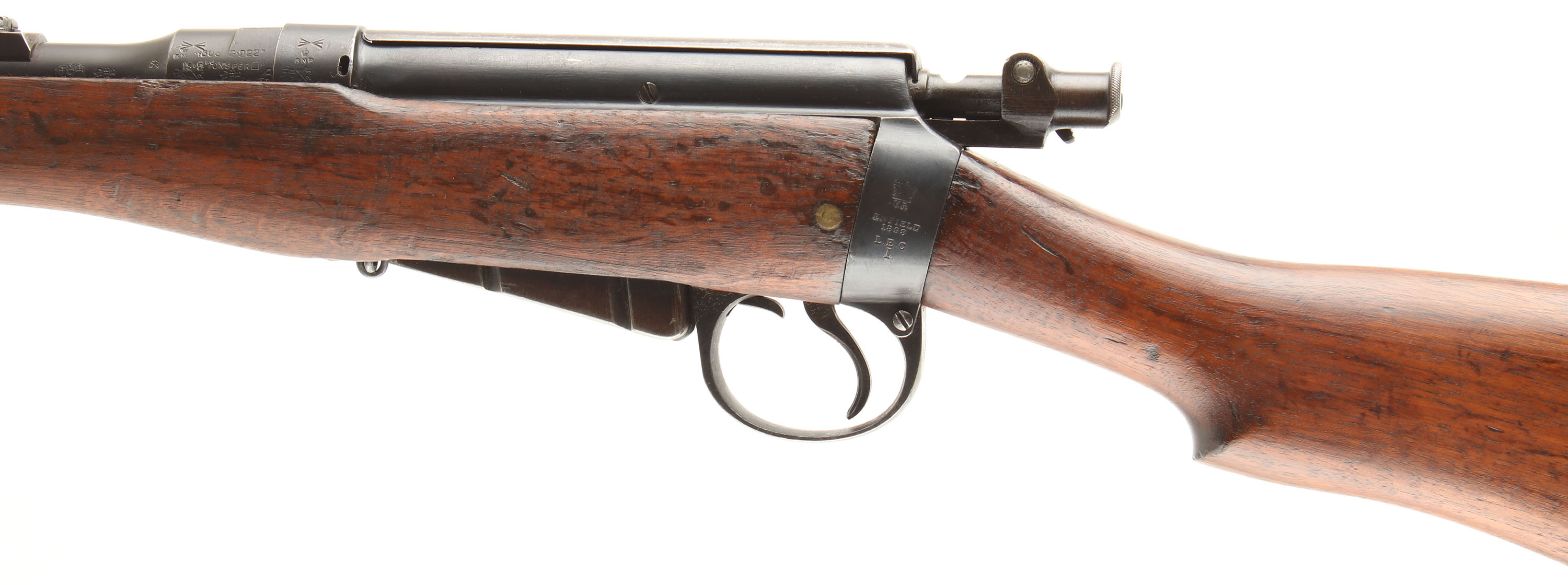 HISTORY: The standard Lee-Enfield for the infantry would be adopted in 1895, the following year a calvary carbine version would be designed & adopted featuring a shorter barrel & a smaller 6-shot magazine to make the rifle handier. In January of 1904, Britan adopted the SMLE Mk.1 which was their first short rifle having its barrel in between the standard rifle & carbine length's. This model would replace both rifles & carbines in service with one standard model for the whole military. Because of the new model adoption many of Britain's older arms would be refurbished & sold to allies, with some being converted to new models before being sold like this rifle. the R.I.C. (Royal Irish Constabulary) was the police force for all of Ireland from 1822 until 1922 when the Irish free state was formed. They would be renamed the Royal Ulster Constabulary & continued as the police force for Northern Ireland until 1998. In march of 1904 the RIC would order 10,00 carbines of their own pattern, converted from L.E.C. Mk.1 & Mk.1*, they had the front sight protector removed, the leather rear sight protector removed with the screw holes in the stock filled, cleaning rod was removed & the stock channel filled (this was done in the 1899 ''*'' update to all the service rifles), the nose cap being replaced with one that has a bayonet lug & sling swivel, the forend was shortened & reconfigured leading to wood inlets & patches, middle barrel band was removed & the retention spring slot in the stock was patched, a steel sleeve was added to the muzzle to mount the 1888 pattern bayonet, & the unit discs in the stock were marked ''R.I.C.''. In 1905, 500 more were ordered, 450 more in 1907, & finally 250 more in 1913. This rifle's unit disc is marked with the issue number ''1486'', indicating this was part of the first shipment of 2,000 rifles sent over from the 10,000 rifle, 1904 contract.