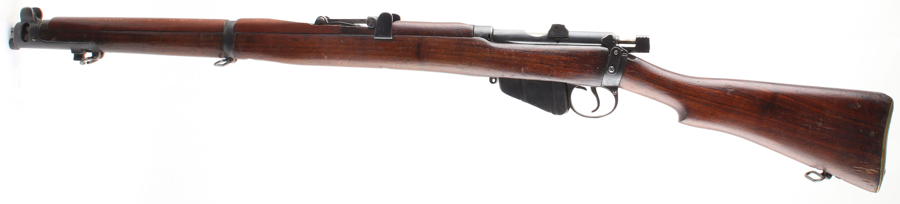 HISTORY: The No.1 MK.III* is a simplification of the No.1 Mk.III that was done to speed up production for WW1. Adopted in 1915 it removed the volley sights & the magazine cut-off from the rifle. This is the longest produced pattern of the SMLE being made from 1915 clear till the 1960's in countries like Australia & India. Total production numbers of the No.1 MK.3* is unknown & mixed up with other No.3 models but is in the millions. Fianna Fail means ''Men of Destiny'' in Gaelic & was the name of a major pollical party in Ireland at the time. Rifles bought by the Irish government from Britain were marked with a double ''F'' in circle on the barrel, receiver, or stock.