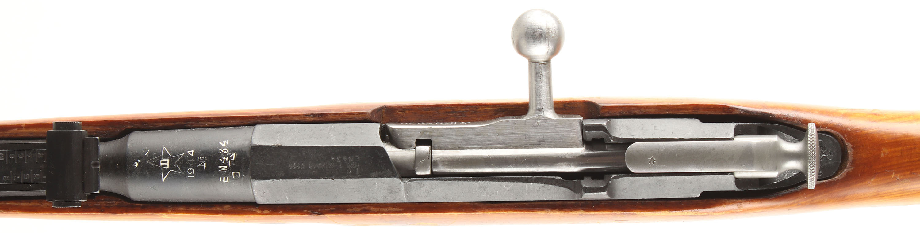 CONDITION: The straight wrist arctic birch stock is very good as being lightly sanded & re-finished with a high gloss lacquer. Stock has some scuffs & scratches to the finish showing the exposed wood underneath. The stock has two arsenal repairs, one small wood fill on the bottom just in front of the magazine, as well as a toe repair/replacement. There are many worn cartouches dotted around the stock but most notably a Diamond refurbishment mark on the comb, & a diagonal line in square refurbishment mark on the right cheek. The metal carries multiple arsenal re-finish's roughness under the finish, & leaving some markings thinned or faded (some are just poorly struck as well). As well as a post import re-blue with the import markings being thinned & blued over. The blued metal finish rates 95% overall with light thinning & light wear on edge. The barrel shank is marked with a Tula star with straight line square refurb mark inside, over ''1944'', over ''NO'', over the S/N, over two more diagonal line in square refurb marks. The top of the receiver has faded import stampings. More small markings on barrel bands & rear of the receiver tang. S/N matching bolt, magazine floor plate, & buttplate. all were scrubbed & force matched with the floor plate having the old number lined out. The bore is good. beginning to darken, proud rifling with light roughness throughout the bore. Has been counter bored. The barrel holds a post front sight with protective globe. The rear sight is a tangent U-notch marked 1 to 10. The stock carries a blued steel buttplate. has roughness under the finish & light finish wear on edges. The stock has both factory sling wells. Rifle has a cleaning rod & comes with a modern green canvas sling with leather dog collars. Mechanical function appears solid. A unique hex receiver M38 with lots of interesting refurbishment markings showing this rifle was well used. FFL or C&R Req - Value: 350 to 700