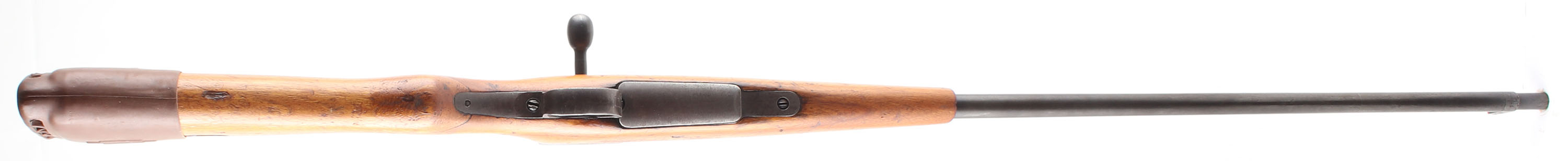 CONDITION: The semi-pistol grip Japanese Walnut (Oni-gurumi or Siebold walnut) stock is very good as being cut down, shaped, lightly sanded & refinished. There are still present deeper dings/gouges from after the refinish, as well as some newer nicks, dings, & scuffs from after. Two-piece Japanese buttstock. Inside of the rear sling cutout is marked ''W''. The metal carries a old thin re-blue that retains almost full coverage but is toning to a mix of gray & brown patina with speckled rust & spots of roughness from cleaned pitting present on the barrel. Some spots of deeper blue are still present at the rear of the receiver. The receiver band is marked with a INTACT chrysanthemum (Most were ground off when surrendered rifles as a face-saving gesture), over ''TYPE 38'' in Japanese. The left side of the receiver is marked with the series mark, the S/N, the Nagoya arsenal logo, & Japanese inspectors marks. The left side of the chamber is stamped ''300'' over ''SAV.'' (the barrel was shortened at the chamber end as part of the re-chamber to 300 Savage). The barrel appears to be a later type 99 barrel that was fitted to a type 38 Rec. with a late production 99 style front sight but with the older type 38 rear sight. The barrel is the same length as a factory type 99 from where the chamber tapers down to the barrel, to the muzzle. S/N matching bolt. The bore is good. It's bright & shiny with thin rifling & a couple spots of roughness. The barrel holds a barleycorn front sight & a flip up ladder, V-notch rear sight marked 4 to 24. The stock carries a blued steel cupped buttplate that's worn gray with speckles of brown patina & over applied stock lacquer on the sides. The rifle has no sling mount or a cleaning rod. Rifle does come with a rubber slip on recoil pad/LOP extender. Mechanical function appears solid. FFL or C&R Req - Value: 150 to 300