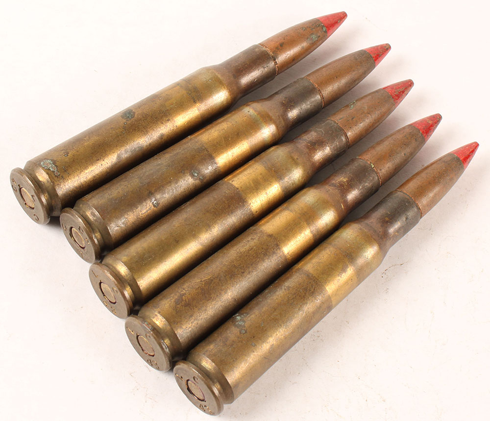 | Lot of 5, 50 BMG Red Tip Tracer Rounds, HS: ''L C 43'', FMJ....