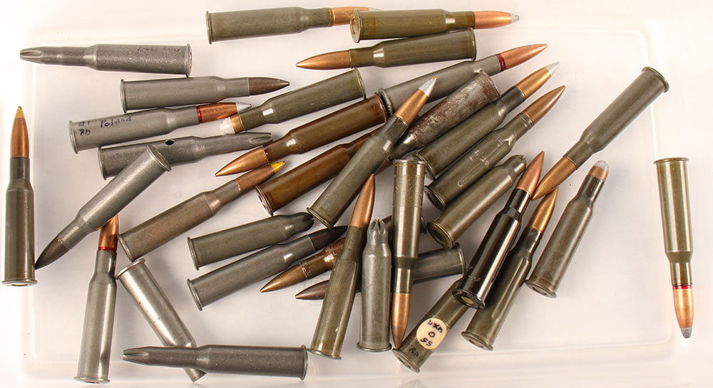 Lot of 35, 7.62x54mm Mosin Nagant, All Lacquered Steel Cases, Numerous headstamps and bullet loading variations. Grade Very Good - Value: 20 to 40