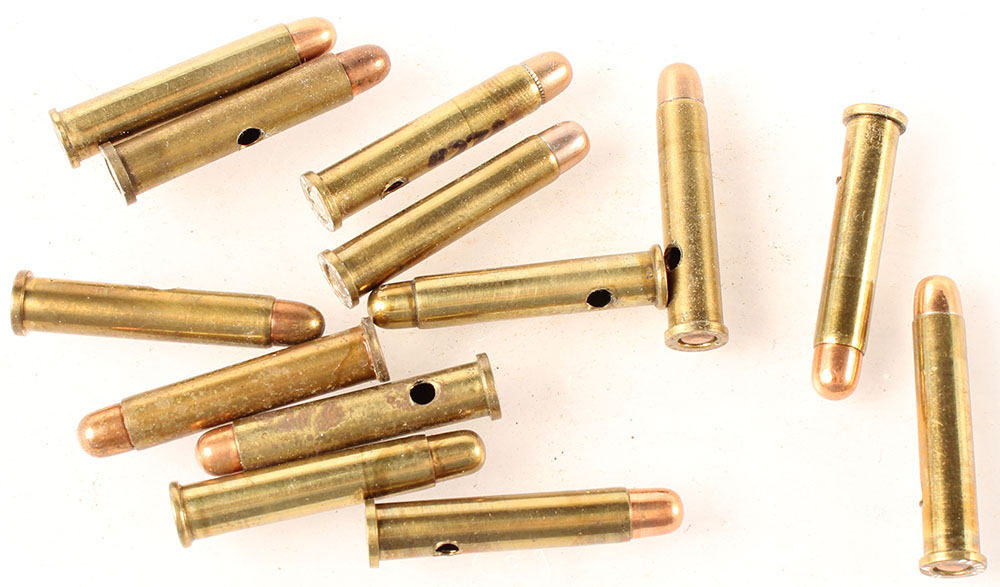 Lot of 13, 5.5mm Velo Dog. Various headstamps from the US and Europe. All different. All except one has one non-factory hole in case. Grade Very Good - Value: 20 to 40