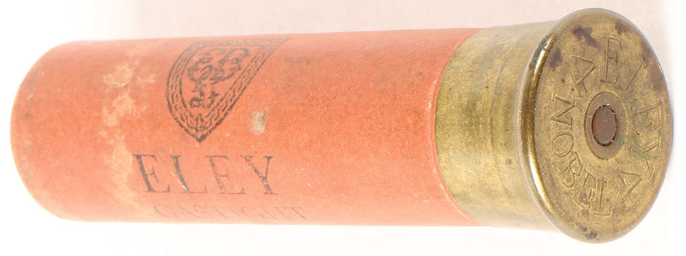 ELEY Nobel, No. 4ga, 3 3/4'' OAL. Gastight Quality Case, Loaded red paper case with printing, TW AAA. Grade: Excellent - Value: 100 to 300