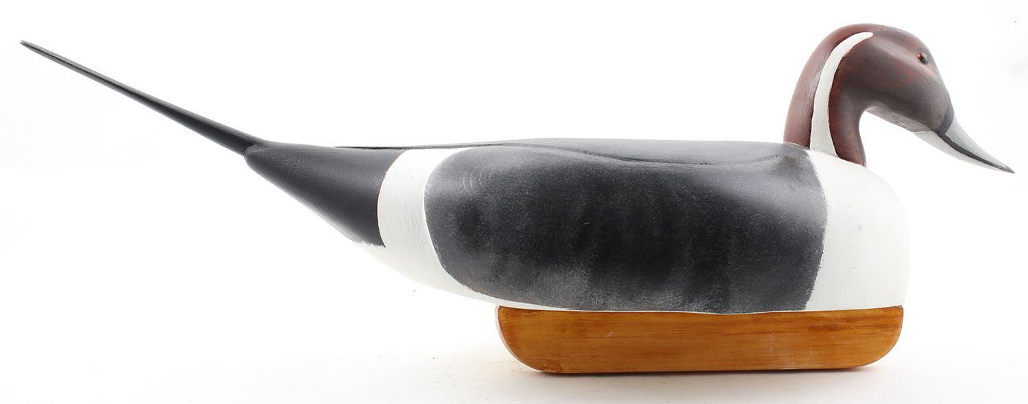 Pintail Drake by BWH, glass eyes, solid wood, original paint, structurally excellent, marked on bottom, 24'' OAL. Grade: Excellent - Value: 50 to 100