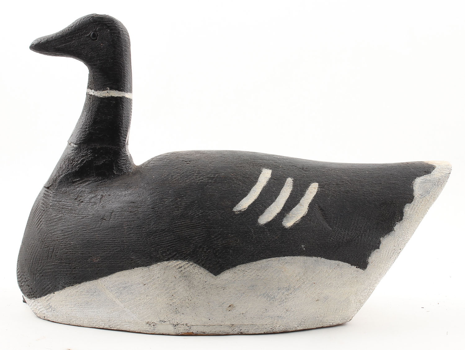 Black Brant by Penman, Victoria, B.C., circa 1960's, glass eyes, solid wood, original paint, repaired crack in neck, 16'' OAL. Grade: Very Good - Value: 50 to 250