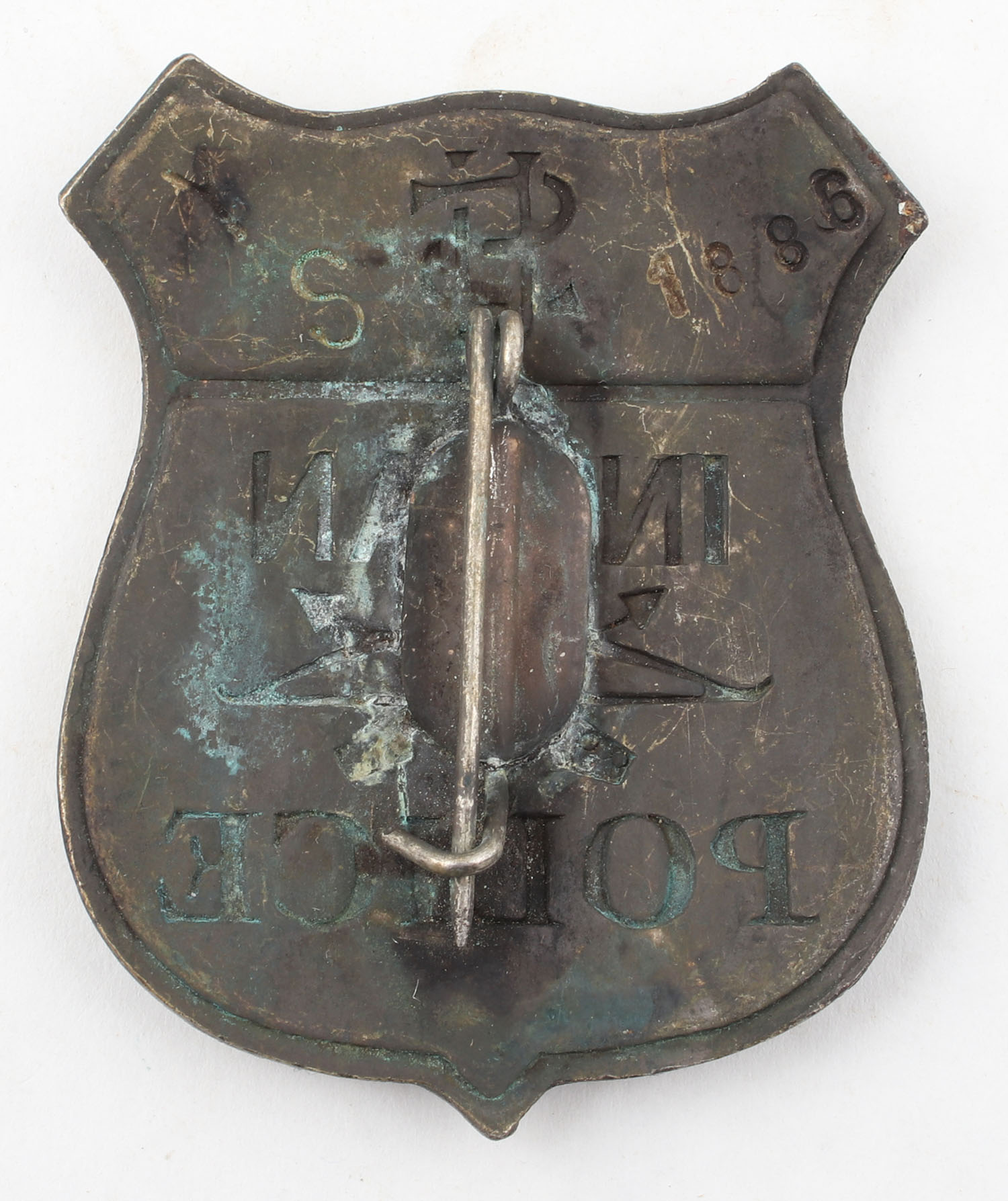 Indian Police badge dated 1886 pinback. Grade: Very Good ++ - Value: 100 to 400