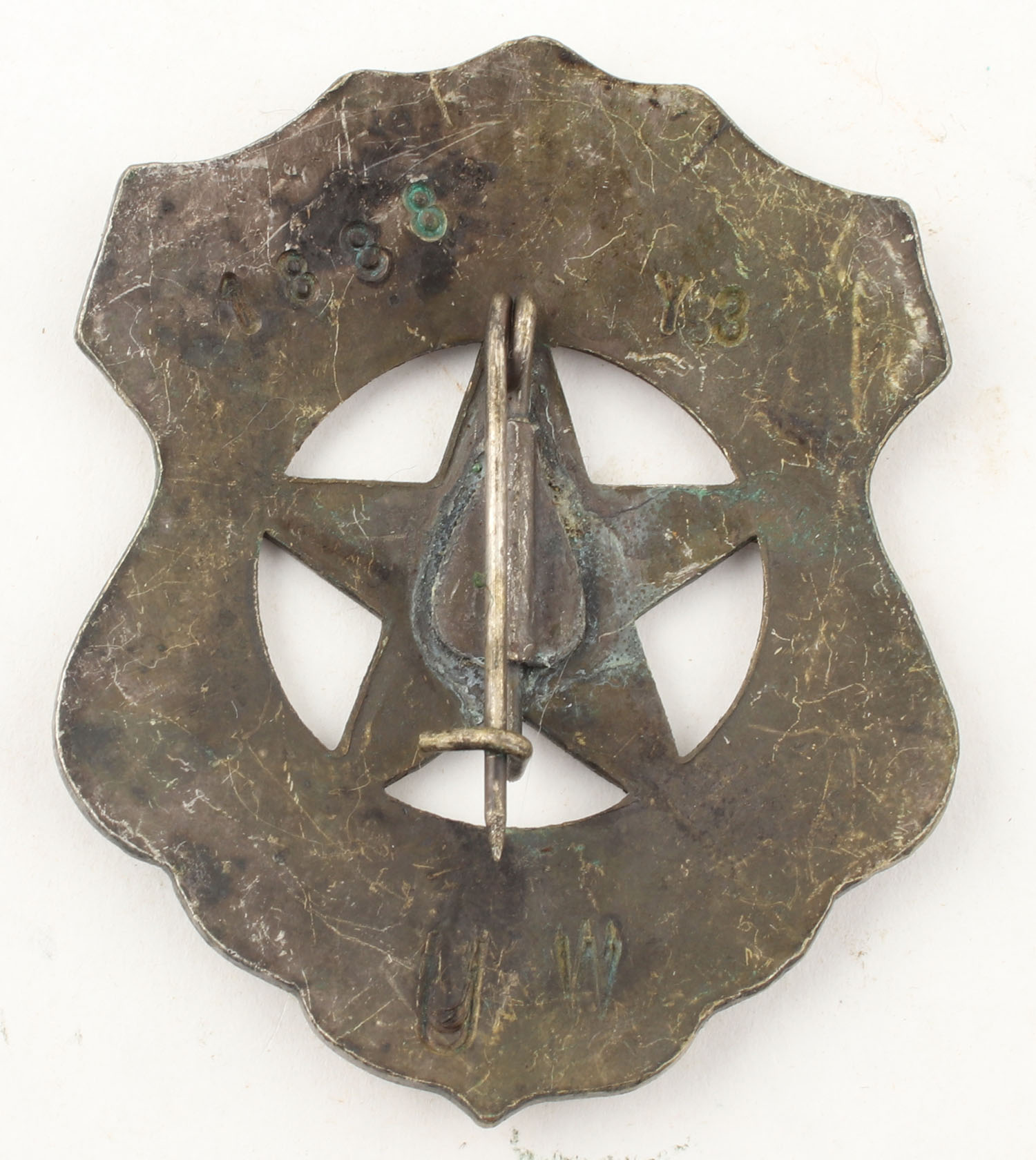 Indian Police badge Sioux #4 dated 1888 pinback. Grade: Very Good ++ - Value: 100 to 400