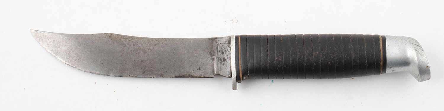 Vintage hunting knife fixed blade leather spacer handle 8.5 OAL. Grade: Very Good ++ - Value: 20 to 100