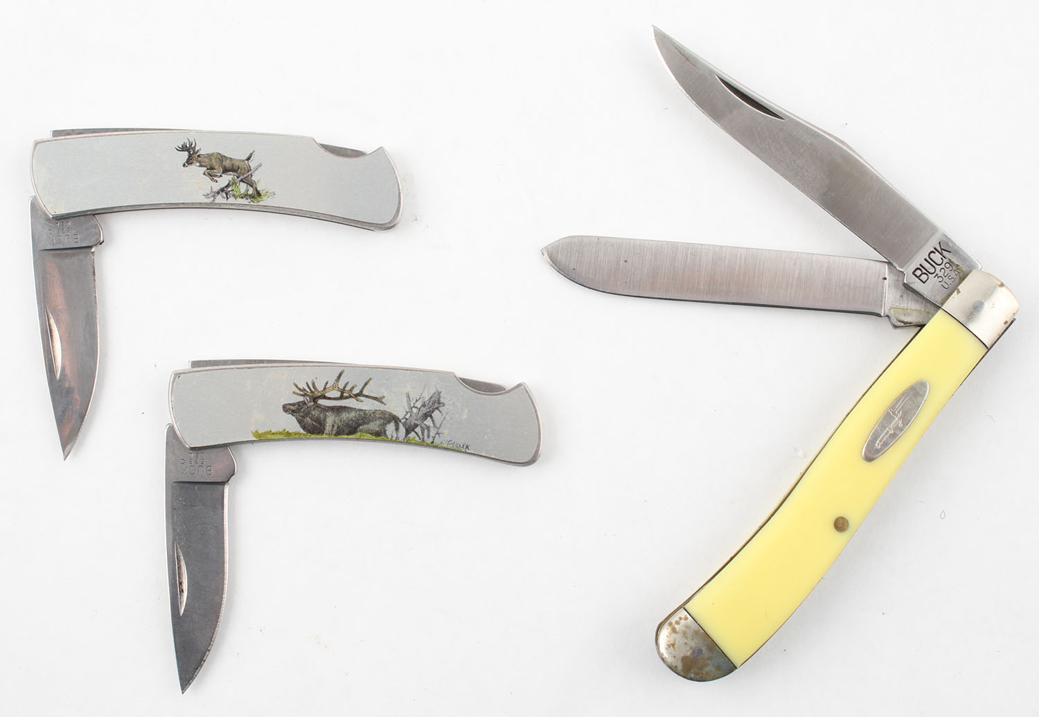 Lot of 3 Buck folding knives, 1 has rust. Grade: Very Good ++ - Value: 20 to 60