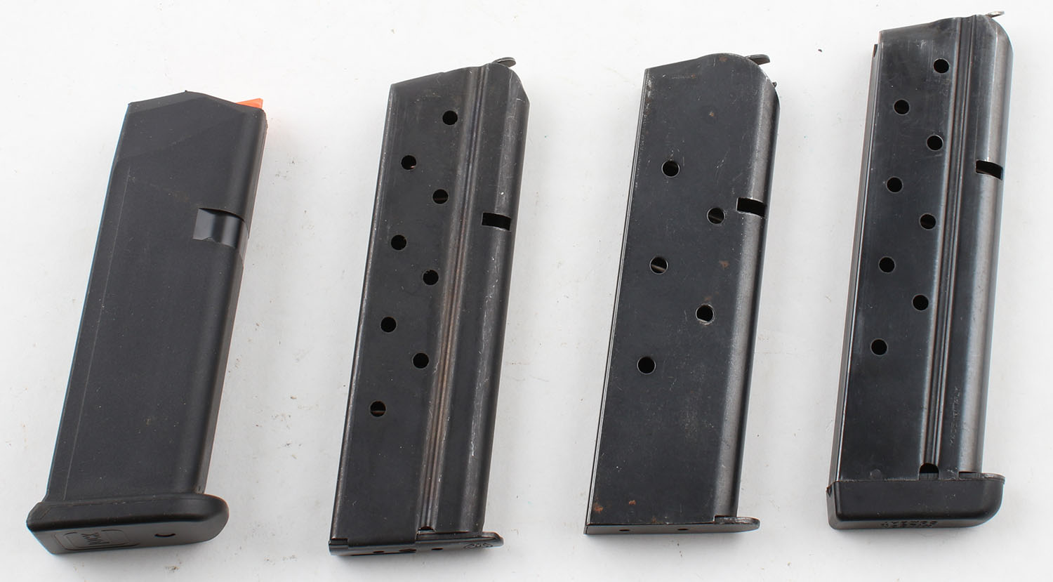 Lot of 4 pistol mags., 9mm and 45 cal. Grade: Excellent ++ - Value: 20 to 60