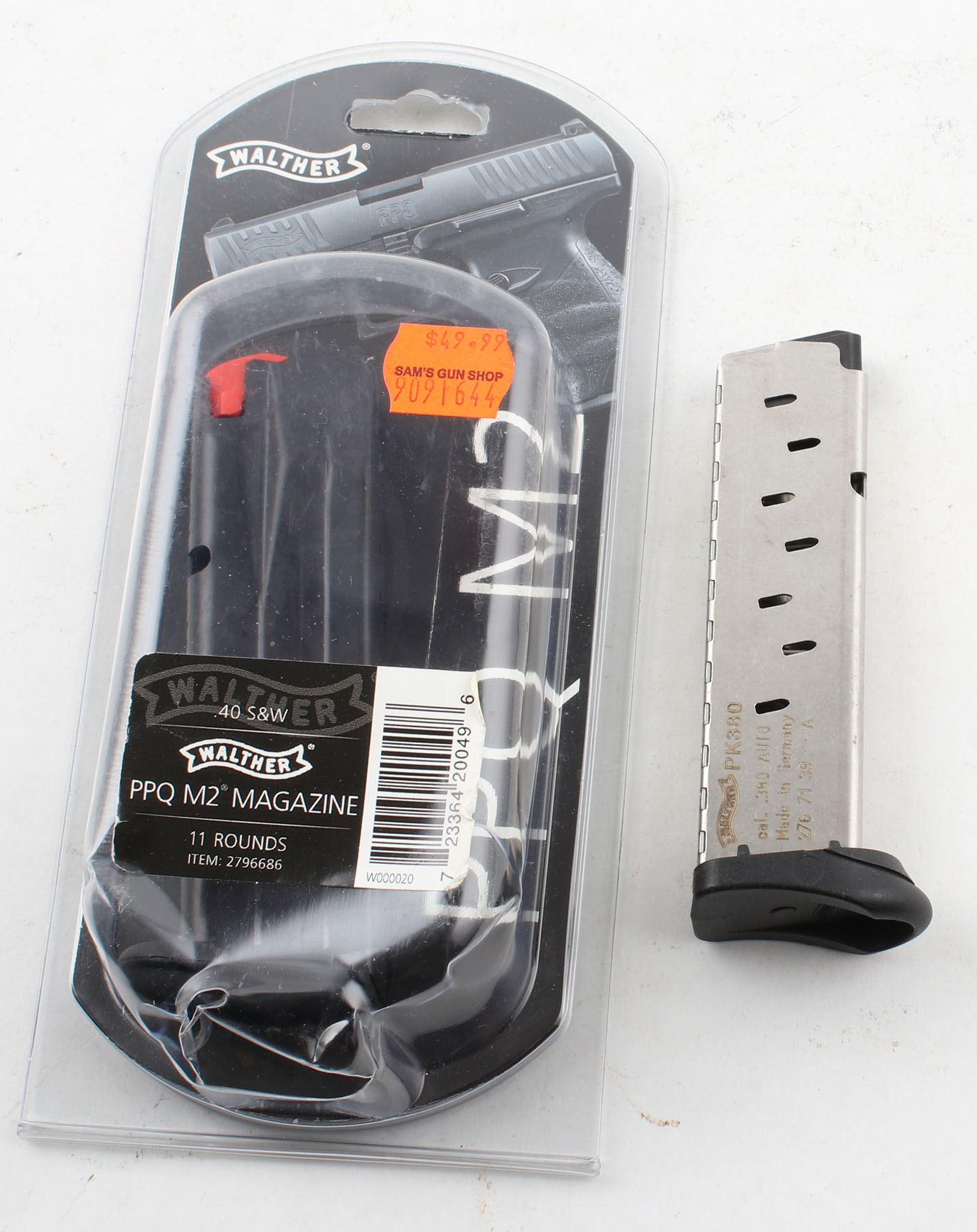 Lot of 2 Walther pistol mags, .40 S&W and .380 auto cal. Grade: Excellent - Value: 16 to 60
