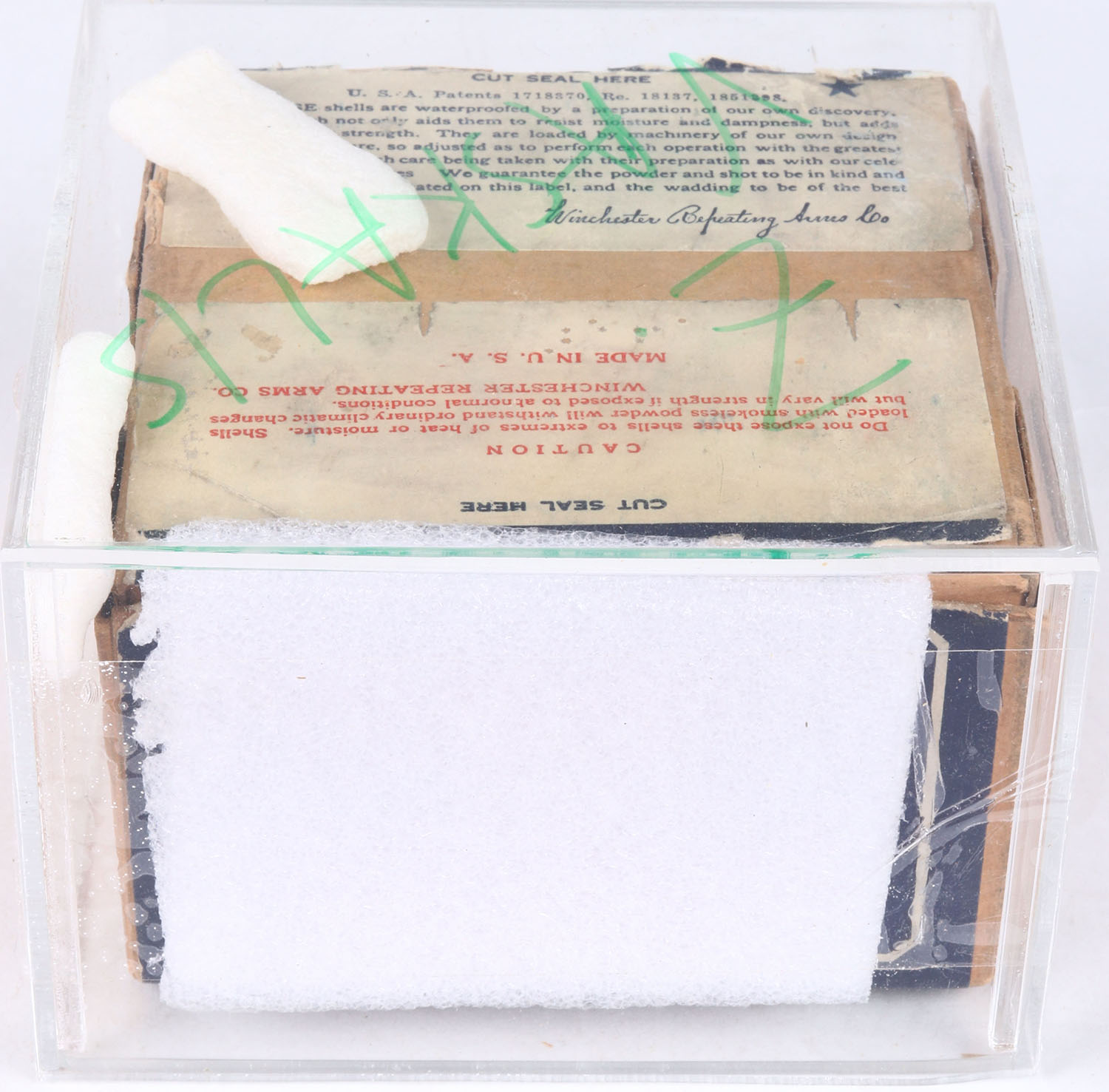 Winchester, Ranger, STAYNLESS, 12ga., 2pc., Full, shot size 6C, buff box with blue, red & white label, box is very solid with minor shell protrusions & great colors, With Acrylic Box. Grade: Excellent + - Value: 100 to 400