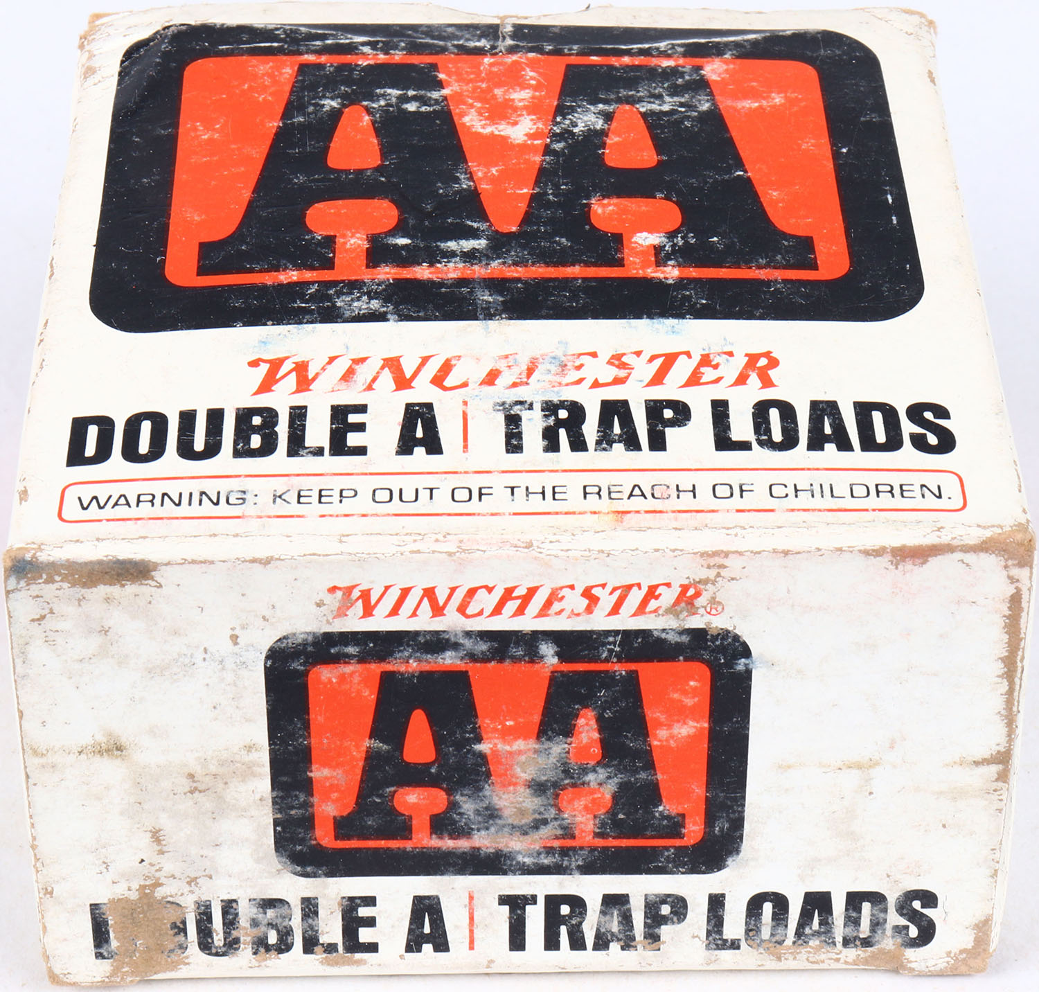 Winchester, AA Trap Load, 12 ga., shot size 7 1/2 but crossed out and replaced with 2, red, black, & white box, solid box, ammo is very good. Grade: Very Good ++ - Value: 10 to 40