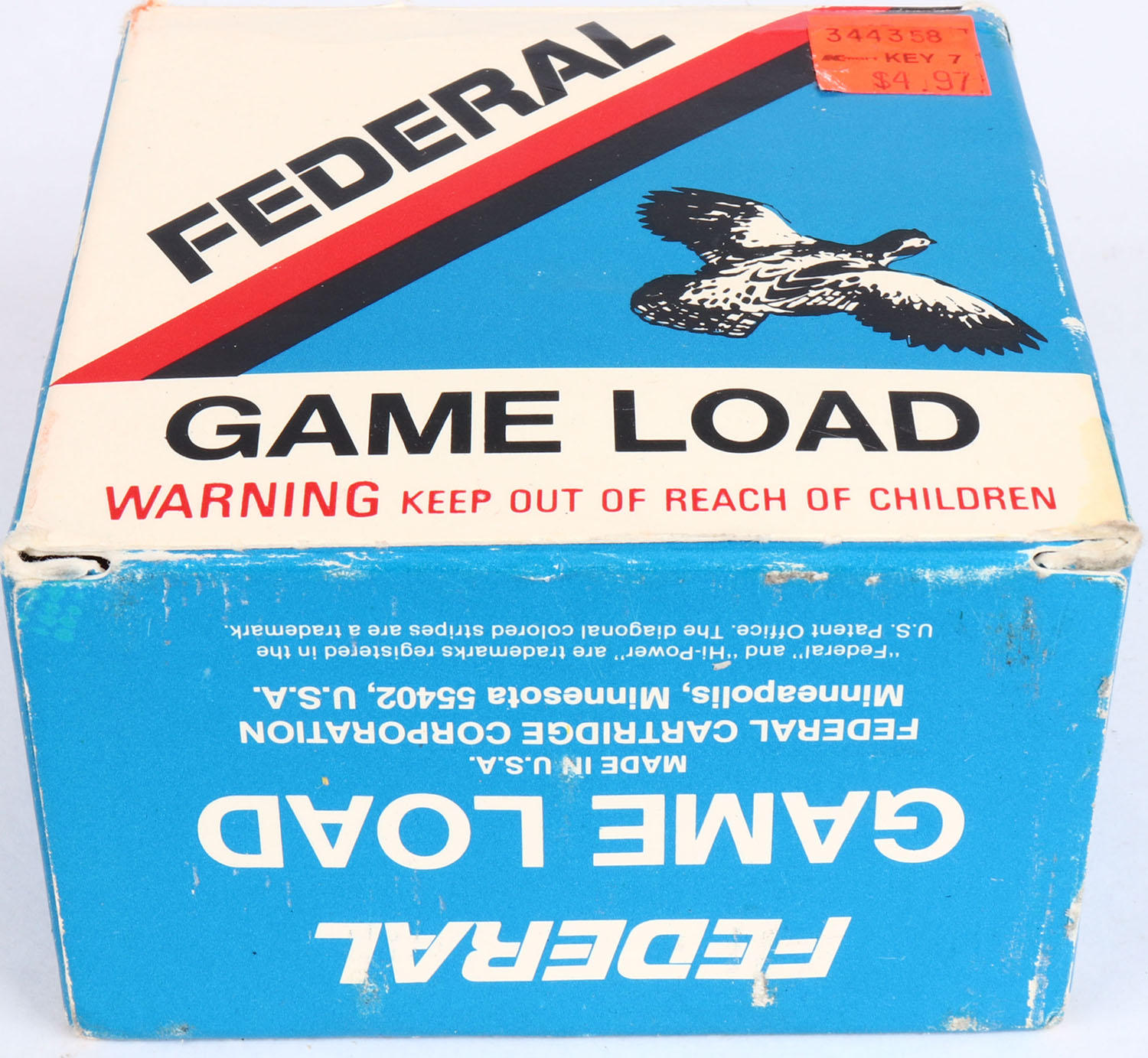 Federal, Game Load, 12ga., 1pc., Full, shot size 6, multi-colored box, shells are excellent. Grade: Excellent - Value: 10 to 20