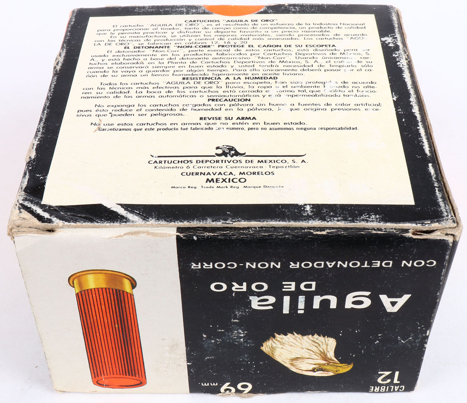 Aguila, 12ga., 1pc., Full, shot size 4, multi-colored box, box is solid, Shells are excellent. Grade: Excellent + - Value: 10 to 20