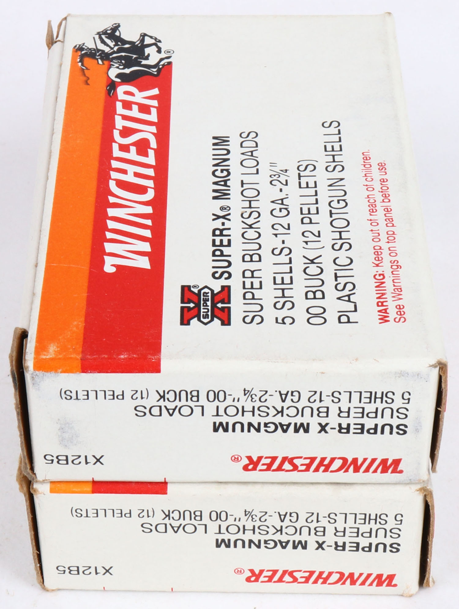 Lot of 2 Winchester, Super X Magnum, 12ga., 1pc., Full, 2 3/4'', shot size 00 Buck, multi-colored box, shells are excellent. Grade: Excellent + - Value: 8 to 20
