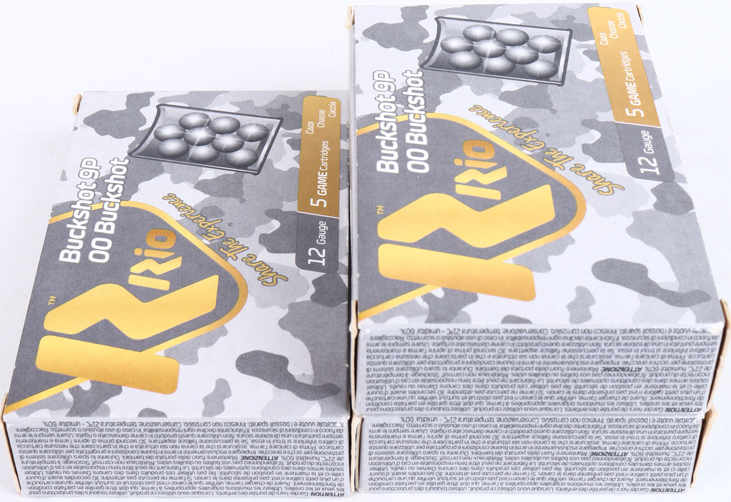 Lot of 3 Rio, 12ga., 1pc., Appears Full, 2 3/4'', shot size 00 Buck, multi-colored box, shells are excellent. Grade: Excellent + - Value: 10 to 20