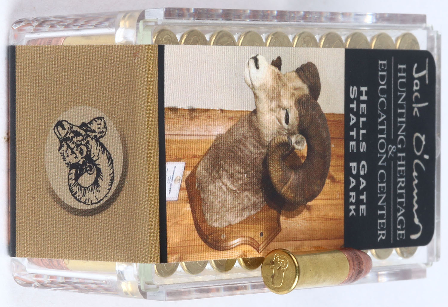CCi, Jack O'Connor Hunting Heritage & Education Center - Hells Gate State Park, .22 Long Rifle, Full & Sealed, 2pc. Clear plastic tray with label features bighorn trophy, comes with extra round to display the unique bighorn headstamp, tray is clean & clear, label is intact with minty color. Grade: MINT - Value: 50 to 150