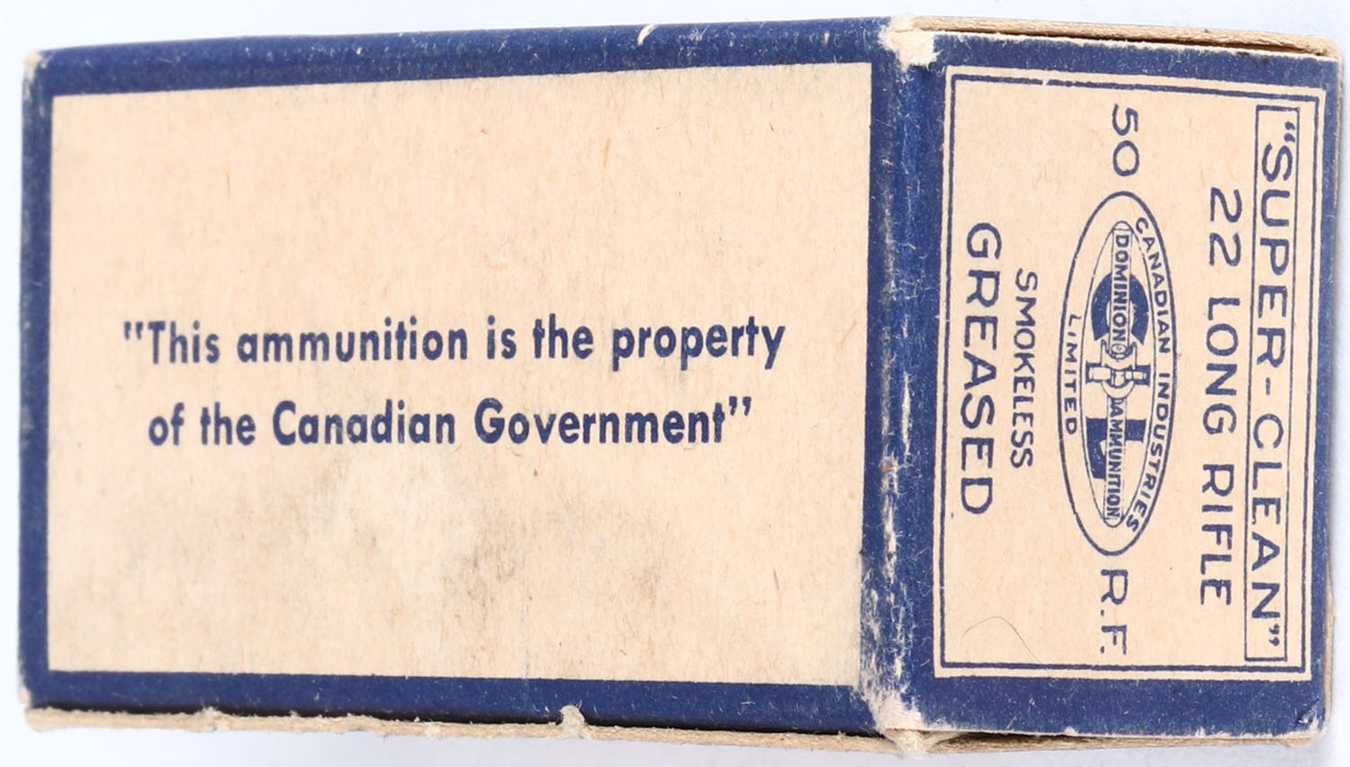 CIL, Super-Clean, .22 Long Rifle, Smokeless Greased, RHWeb: CIL-2 LR-3, Full, 1pc. Buff & blue box, box is near mint with minty color, only very minor shelf wear to bottom, very minor corner wear, edges are crisp, end flaps are solid, ammo is very good. Grade: Excellent ++ - Value: 10 to 40