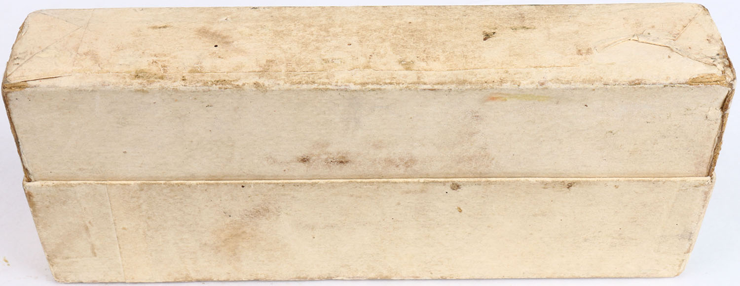 Winchester, .45-70-330 ''Gould'' Hollow Ball, Model 1886, Partial 5rds., 2pc. Buff box with blue label, box is solid with very good color, minor age soiling, staining to top, shelf wear, some edge & corner wear, labels are intact, ammo is excellent. Grade: Very Good ++ - Value: 100 to 300