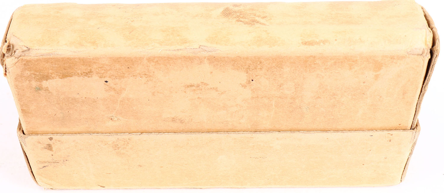 Winchester, .32-40, Smokeless Powder, 165 Grain Soft Point Bullets, Full of mixed ammo, 2pc. Buff box with orange labels, box is solid with excellent color, minor age soiling & shelf wear, some edge & corner wear, labels are intact, ammo is excellent to minty. Grade: Very Good ++ - Value: 10 to 50