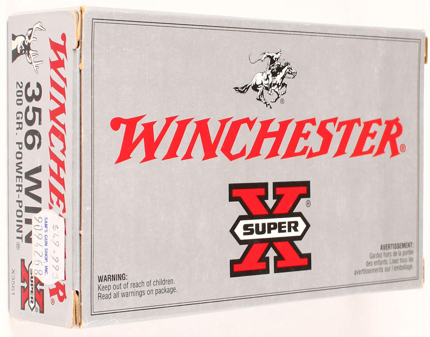 Winchester, Super-X, 356 Win, 200 Grain Power-Point, Full, 1pc., Multi-colored box, box is solid with great color, Ammo is excellent. Grade: Excellent + - Value: 20 to 80