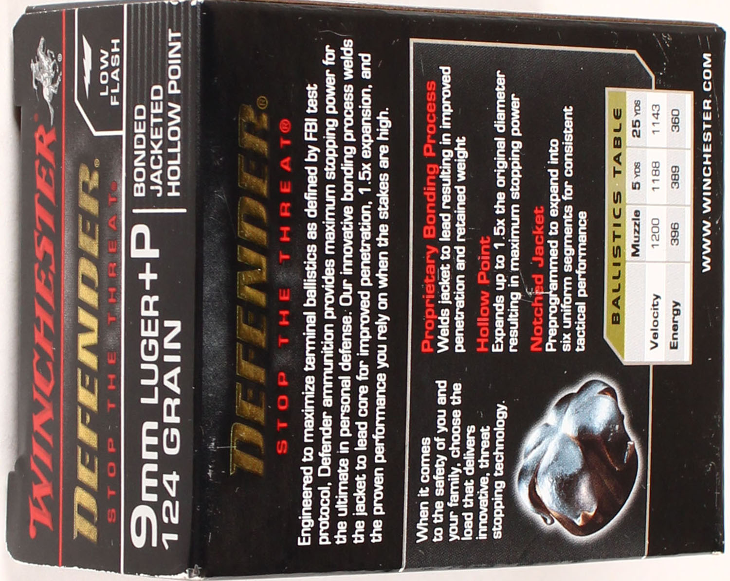 | Winchester, Defender, 9mm Luger +P, 124 Grain Bonded Jacketed H...