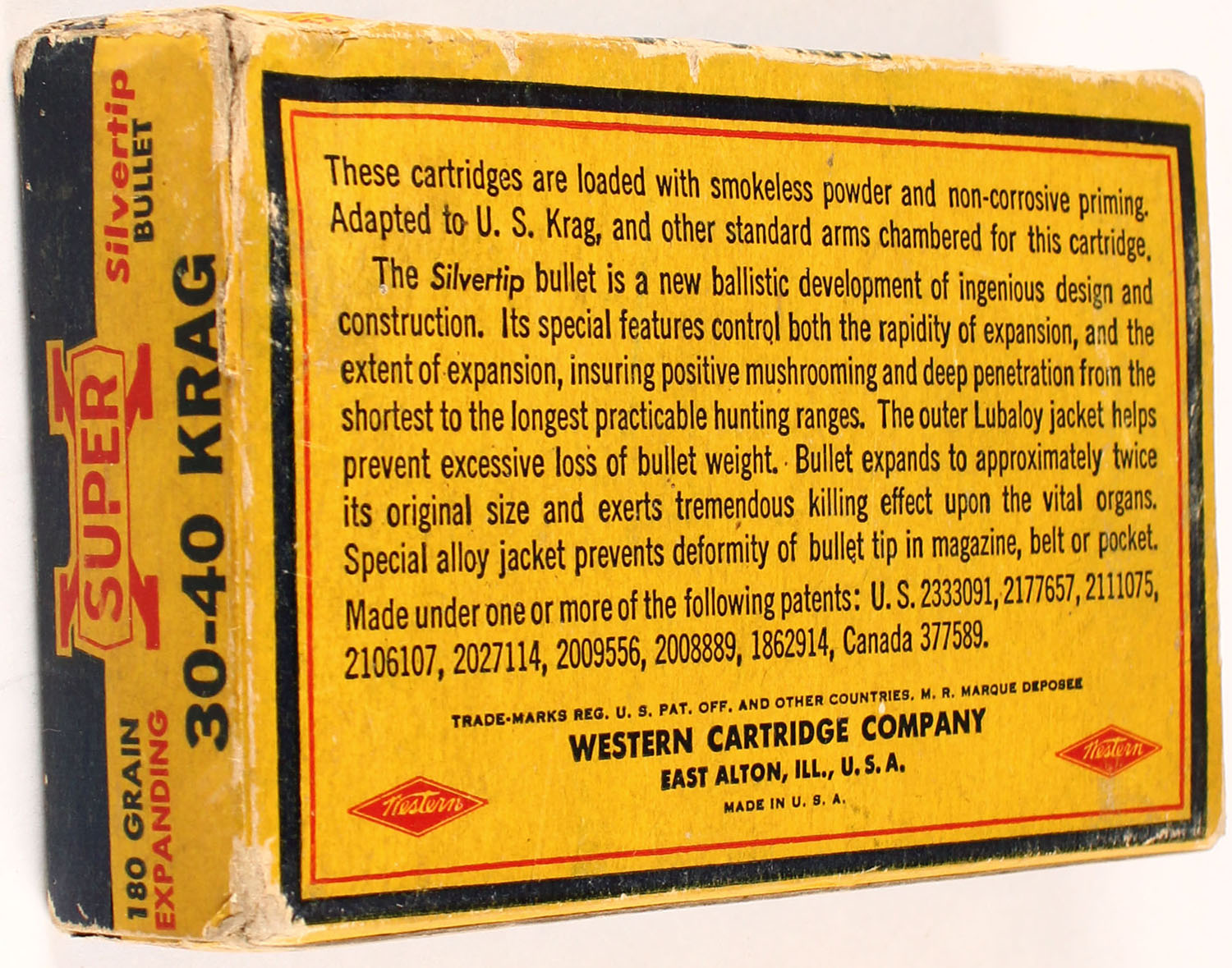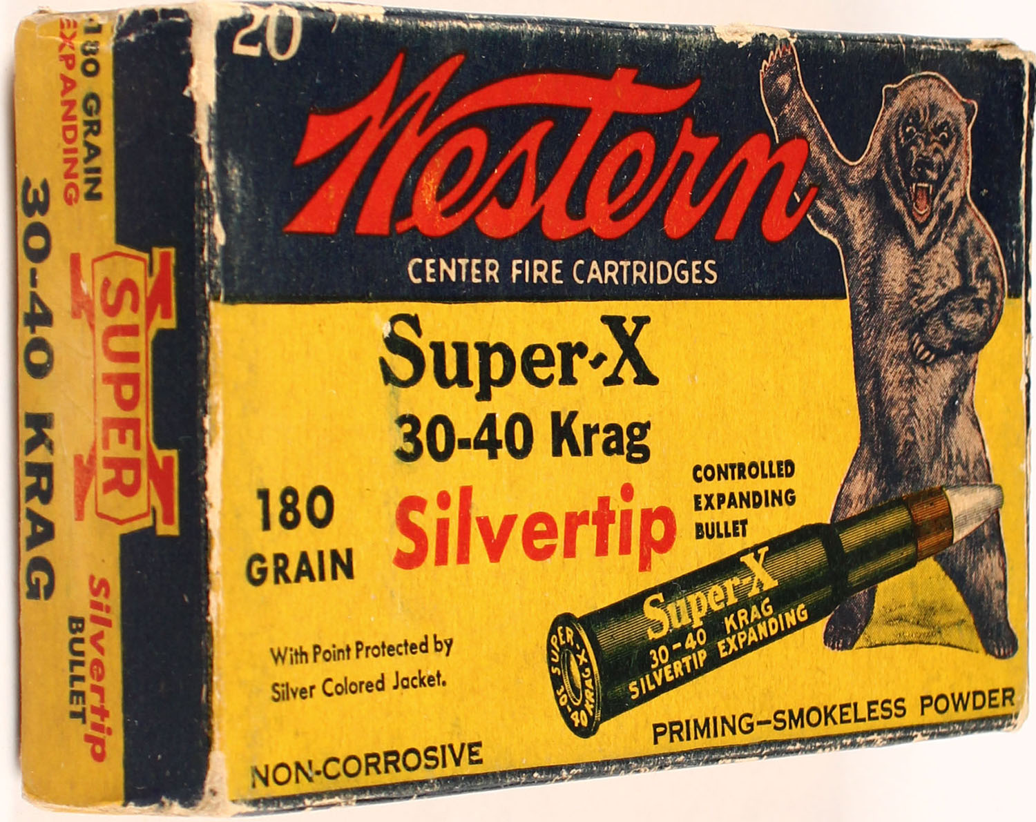Western, Super-X, .300 H&H. Magnum, 180 Grain Silvertip Bullet, Controlled Expanding Bullet, Full, 1pc. Yellow blue & red Bear Box, box is has scuffing, ammo is excellent. Grade: Very Good + - Value: 30 to 90