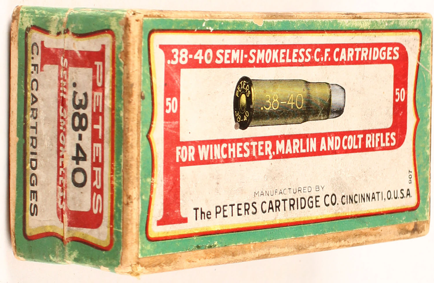 | Peters, .38-40, Semi-Smokeless Powder, 2pc, Full, buff box with ...