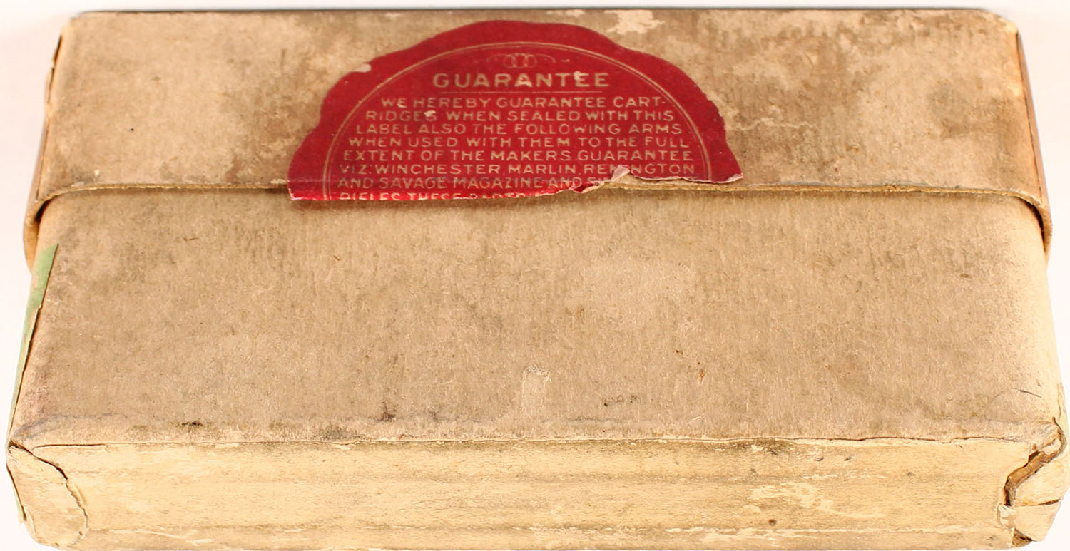 UMC, .35 Remington, Smokeless, 2pc, Full, buff box with buff and black print, box has age soiling and label has scuffing, ammo is excellent. Grade: Very Good - Value: 40 to 200