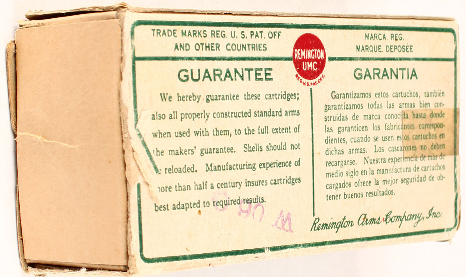 Remington, Kleanbore, .44 S&W Special, 246 Grains Lead Bullet, Partial 46rds., 1pc. Green white & red dog bone box, box is missing one end flaps & has a seam split to top, has nice color with over label Oilproof, ammo is excellent. Grade: Very Good - Value: 20 to 100