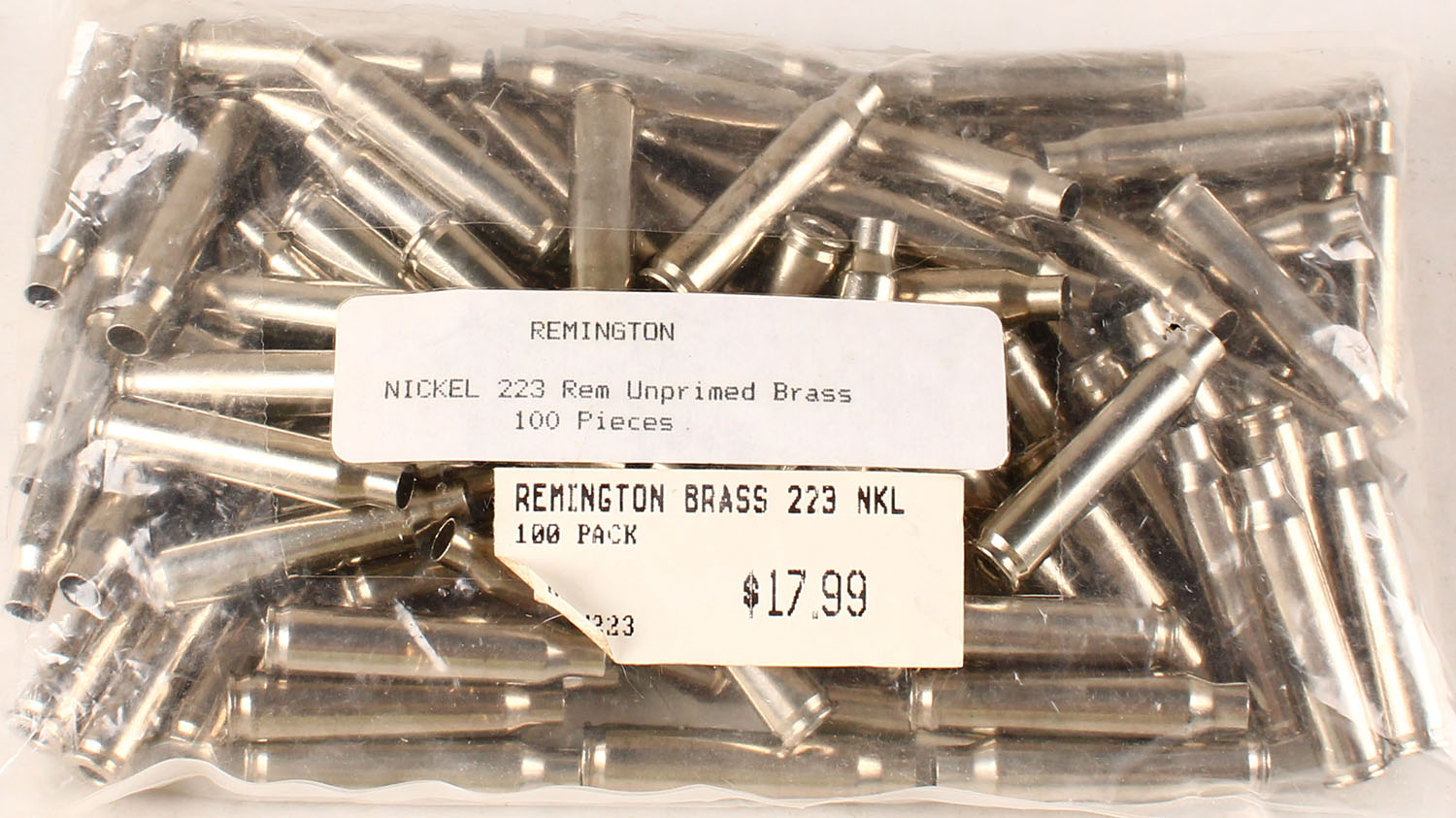 Lot of 100 nickeled unprimed cases marked H/S: REM 223. Grade: Excellent - Value: 10 to 60