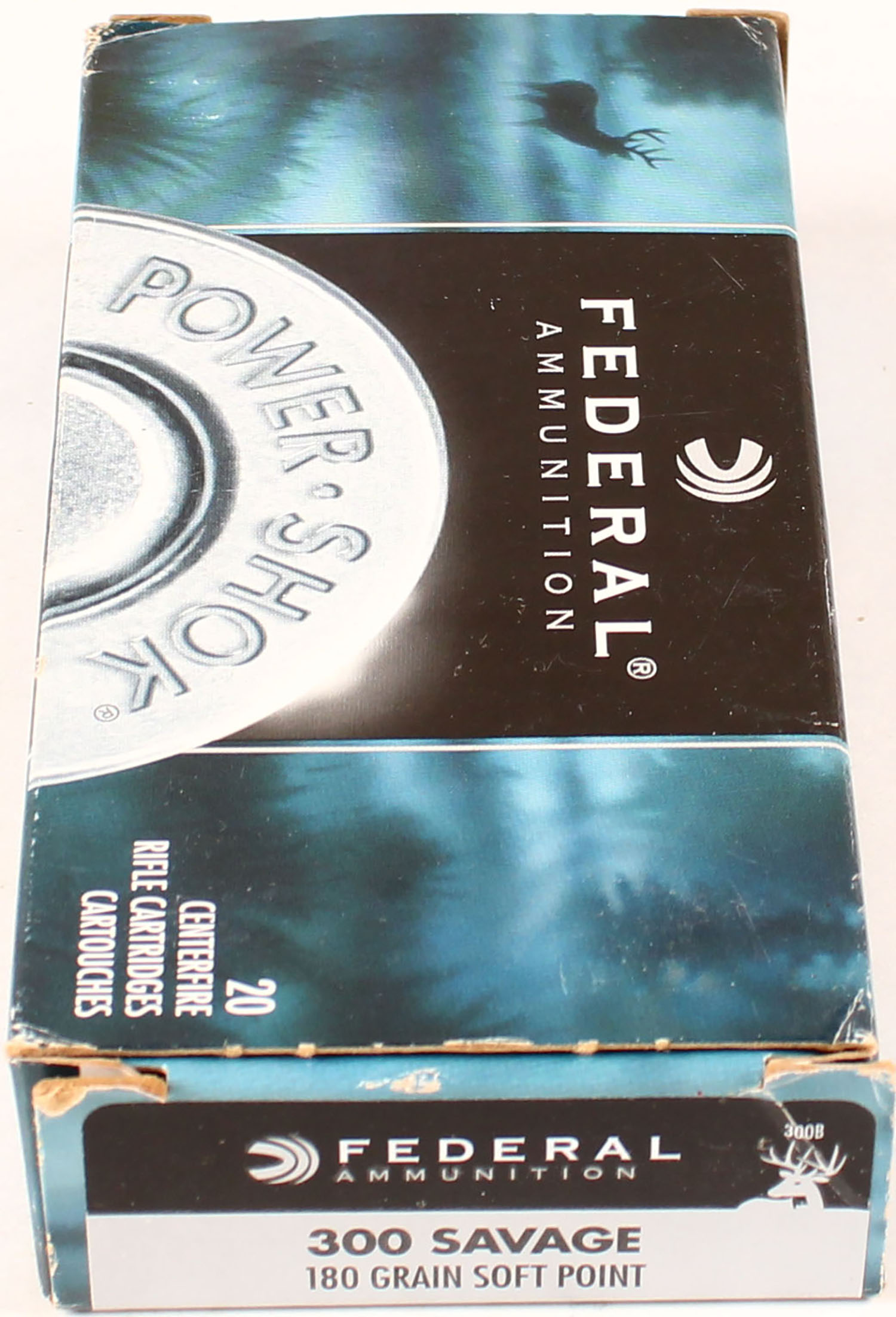 Federal, Power Shok, 300 Savage, 180 Grain Soft Point, Full, 1pc. multi-colored box, box is solid with excellent color, Ammo is excellent. Grade: Excellent ++ - Value: 20 to 80